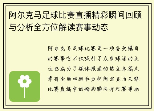 本文将全面解析奥斯足球比赛的直播时间表与赛事安排,为广大球迷提供一份详尽的指南。首先,文章将介绍奥斯足球比赛的基本情况,包括联赛级别、参赛队伍和历史背景等。接着,我们会深入探讨赛事直播时间表的重要性,以及如何有效获取相关信息。此外,文章还会分析各类赛事的安排,包括国内联赛、杯赛和国际赛事,让读者对整...