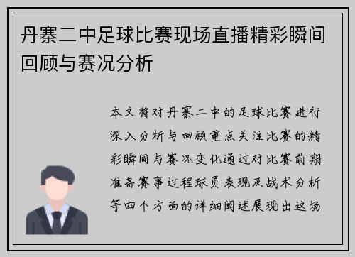 在当今社会,青少年体育活动愈发受到重视,其中校园足球作为一种极具魅力的运动,成为了培养学生团队合作精神与身体素质的重要途径。翠屏区校园足球比赛的精彩直播不仅为青少年提供了展示自我的平台,更通过实时转播提升了比赛的观赏性和参与感。本文将从四个方面探讨这一赛事对青少年体育发展的促进作用及其在团队精神培养...